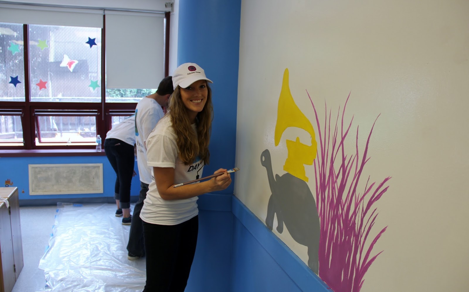 On July 26th, approximately 50 staff members from international branding firm Siegel+Gale joined Odyssey House to paint a mural and the playrooms at the Manor Family Center. The images and mural painted by Siegel+Gale bring a touch of whimsy to the playrooms and create a relaxing space for the facility’s residents.