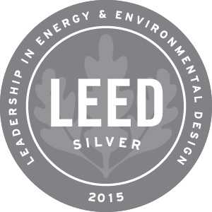 LEED, or Leadership in Energy & Environmental Design, is a certification program by the US Green Building Council that recognizes best-in-class building strategies and practices. To receive LEED certification, building projects satisfy prerequisites and earn points to achieve different levels of certification. Key green design features that contributed to our Silver certification include drought-resistant landscaping; water-saving fixtures; daylight and occupancy sensors; low-VOC paints and materials; Energy Star appliances; and bike storage.